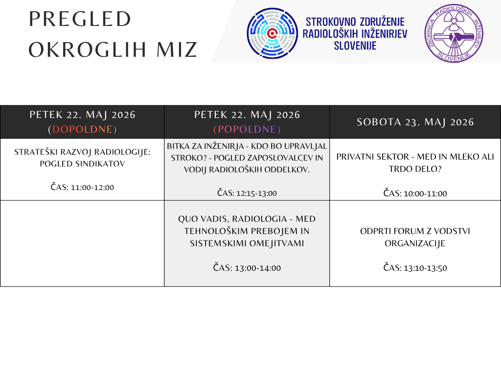 Dva dni strokovnih vsebin, predavanj, okroglih miz in praktičnih delavnic za radiološke inženirje.